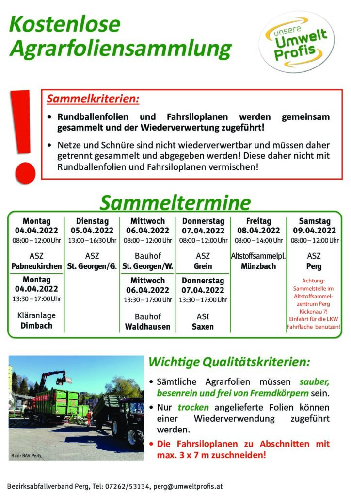 Aktuelles › Silofoliensammlung Frühjahr 2022 Silofoliensammlung Frühjahr 2022 1. März 2022 · Gemeinde